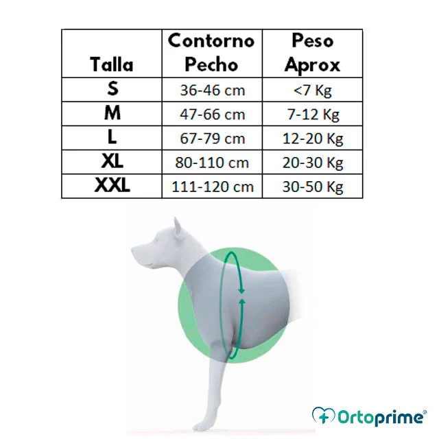- TALLAS: Disponible en tallas desde la S a la XXL, para conocer la talla adecuada mida el contorno del pecho del perro. Si tiene dudas entre dos tallas, se recomienda elegir la más grande.