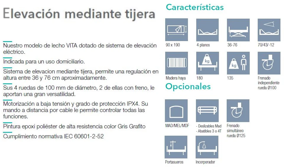Características Lecho Sanitario Electrónico mecanismo Tijera