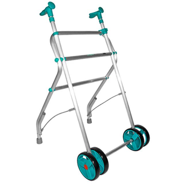 Andador plegable este caminador de diseño innovador, combina una estructura de aluminio ligera y robusta con detalles en piezas termoplásticas de alta durabilidad, garantiza una maniobrabilidad sencilla y segura. Cuenta con empuñaduras ergonómicas permiten una sujeción cómoda y firme, y son regulables en altura para adaptarse a la estatura de cada usuario. Equipado con 2 ruedas dobles fijas en la parte delantera que ofrecen un agarre excepcional en cualquier tipo de superficie, siendo ideal para espacios interiores. Sistema de plegado práctico, facilita el almacenamiento y transporte. Disponible en una variedad de colores: coral, azul, esmeralda, pistacho y negro.