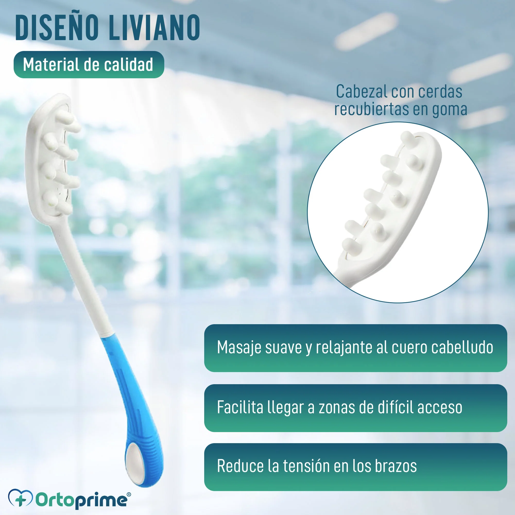 Cepillo masajeador de pelo, es una herramienta de cuidado capilar innovadora, con un diseño liviano que reduce el esfuerzo físico, su cabezal recubierto en goma masajea el cuero cabelludo al aplicar el champú, promoviendo la circulación sanguínea y la limpieza profunda. El mango largo proporciona un agarre cómodo y facilita el lavado en áreas difíciles de alcanzar. Longitud total 36 cm.