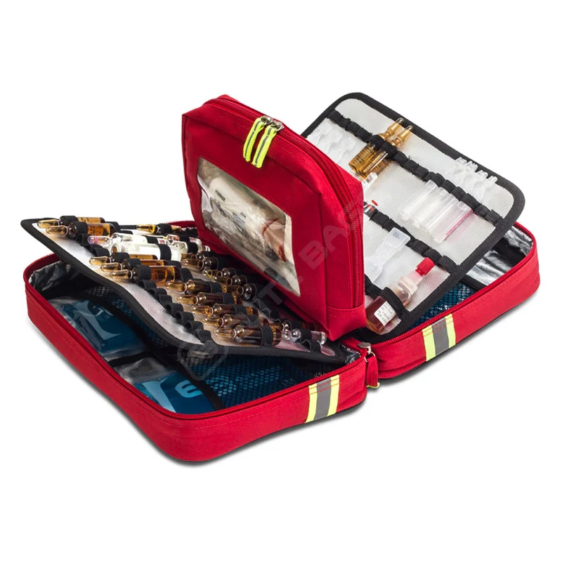 Bolso para ampollas gracias a sus cuatro bandejas con pestañas identificativas, el profesional de la salud reducirá los tiempos de localización y aplicación de los medicamentos, logrando así una mejor atención al paciente.